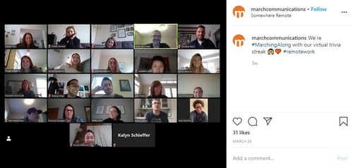 At Tier One Partners, we’re hosting daily Zoom calls with our staff to check in on everyone’s welfare and get a sense of everyone’s day, discuss client opportunities and challenges, etc. It’s great to see everyone’s faces! We’re also scheduling bi-weekly culture activities via Zoom, such as an agency-wide limerick contest around St. Patrick’s Day, a baby picture contest, virtual happy hours and more.