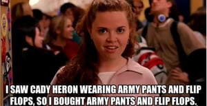 “I saw Cady Heron wearing army pants and flip flops, so I bought army pants and flip flops.” A simple movie quote that defines an